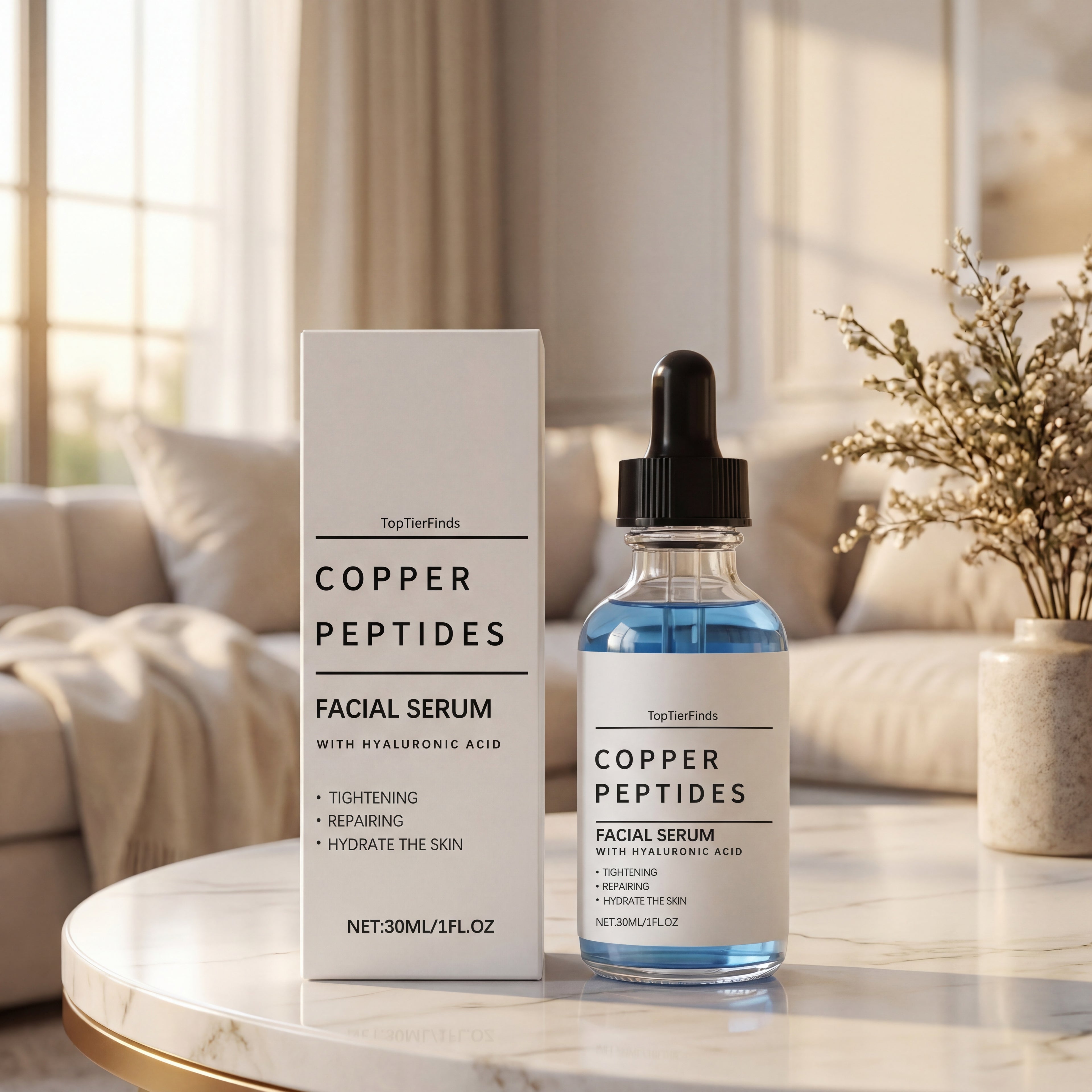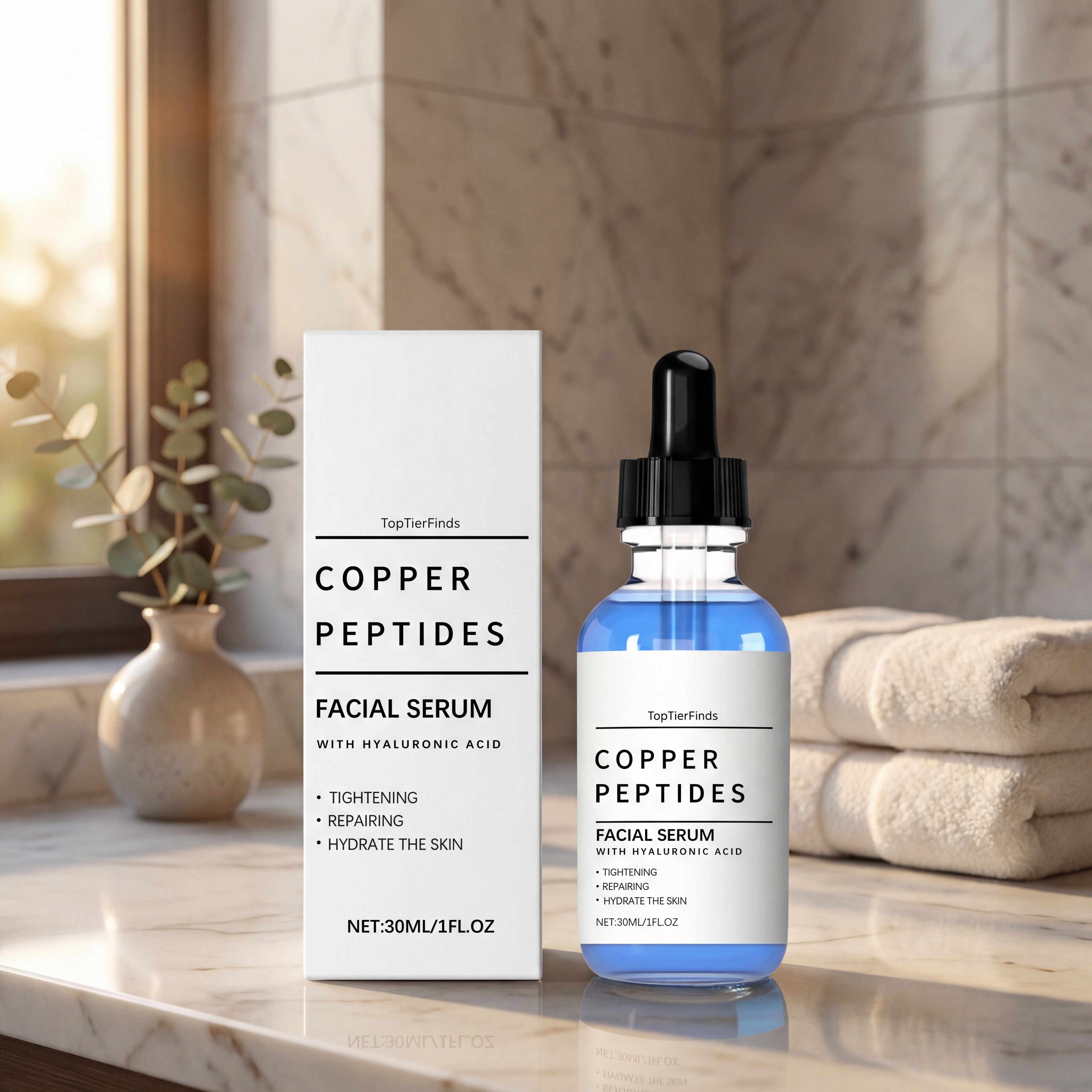 This advanced Copper Peptides Facial Serum is designed to support skin repair, hydration, and visible anti-aging benefits for a smoother, firmer-looking complexion. Lightweight and fast-absorbing, it helps improve elasticity, refine texture, and boost radiance without heaviness. Powered by copper peptides and hyaluronic acid, it delivers lasting moisture and supports healthy skin renewal for a refreshed, youthful glow.